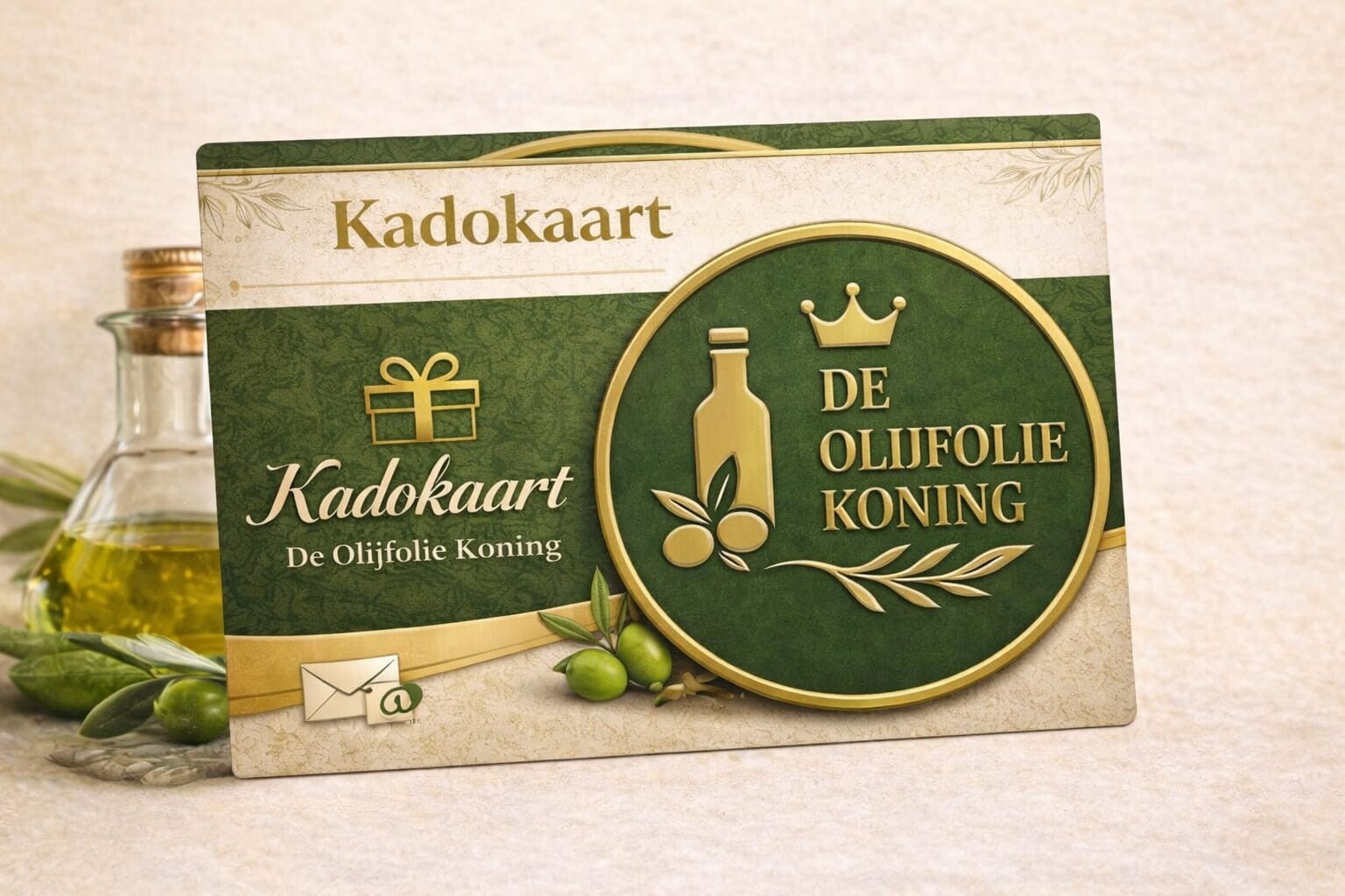 Op zoek naar een origineel cadeau? Onze kadokaarten zijn ideaal voor verjaardagen, feestdagen, of gewoon om iemand te verrassen. Met een kadokaart van De Olijfolie Koning geef je een culinaire ervaring cadeau. De ontvanger kan zelf zijn favoriete olijfolie en andere lekkernijen uitkiezen.